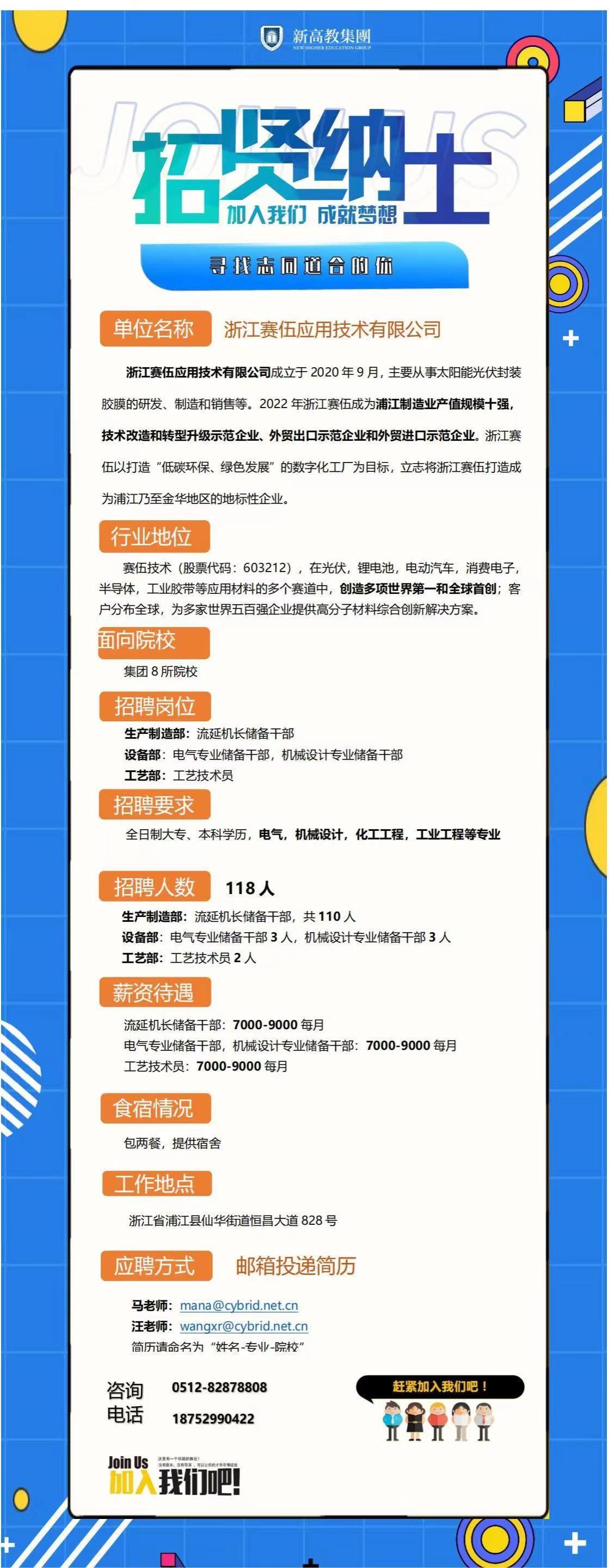 【线上招聘】浙江赛伍应用技术有限公司