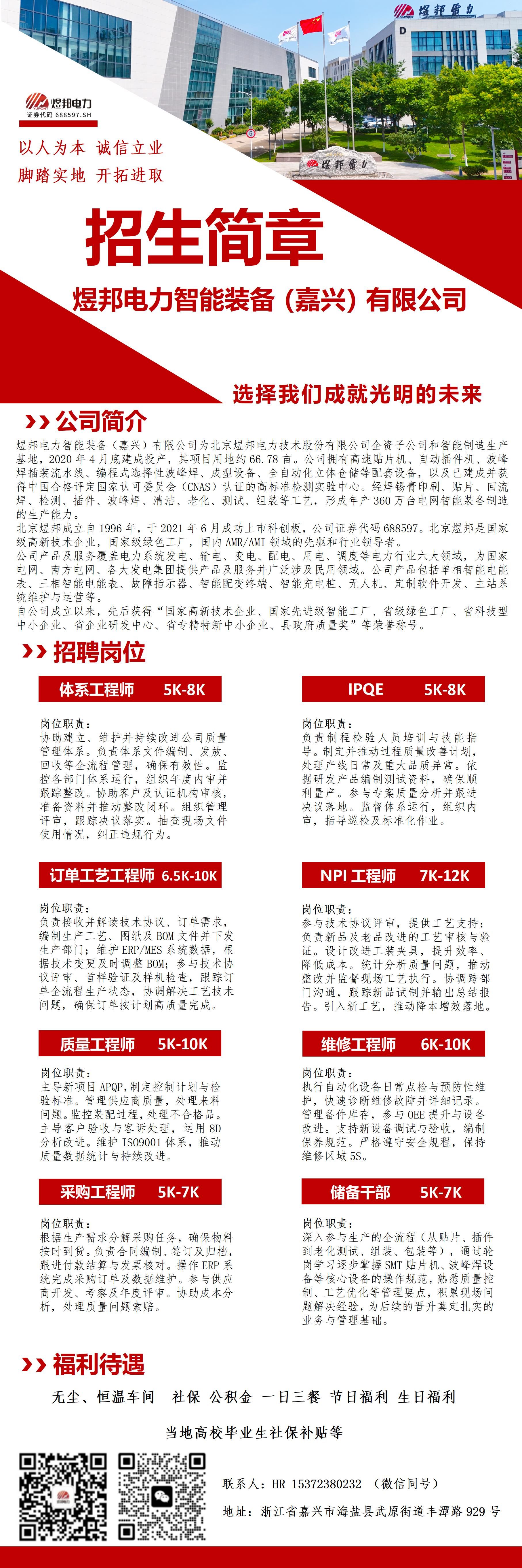 【招聘信息】煜邦电力智能装备(嘉兴)有限公司