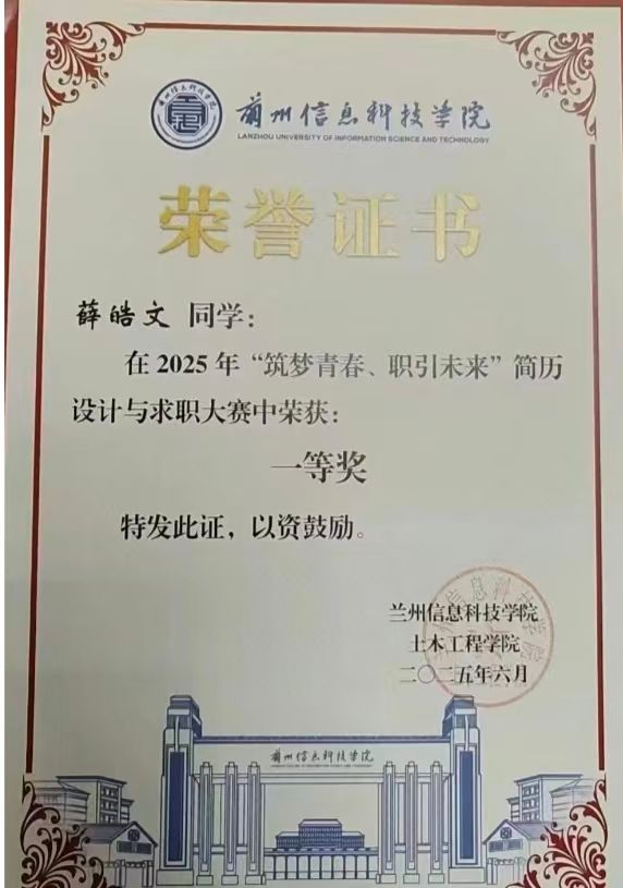 薛皓文2026届水利水电工程专业毕业生