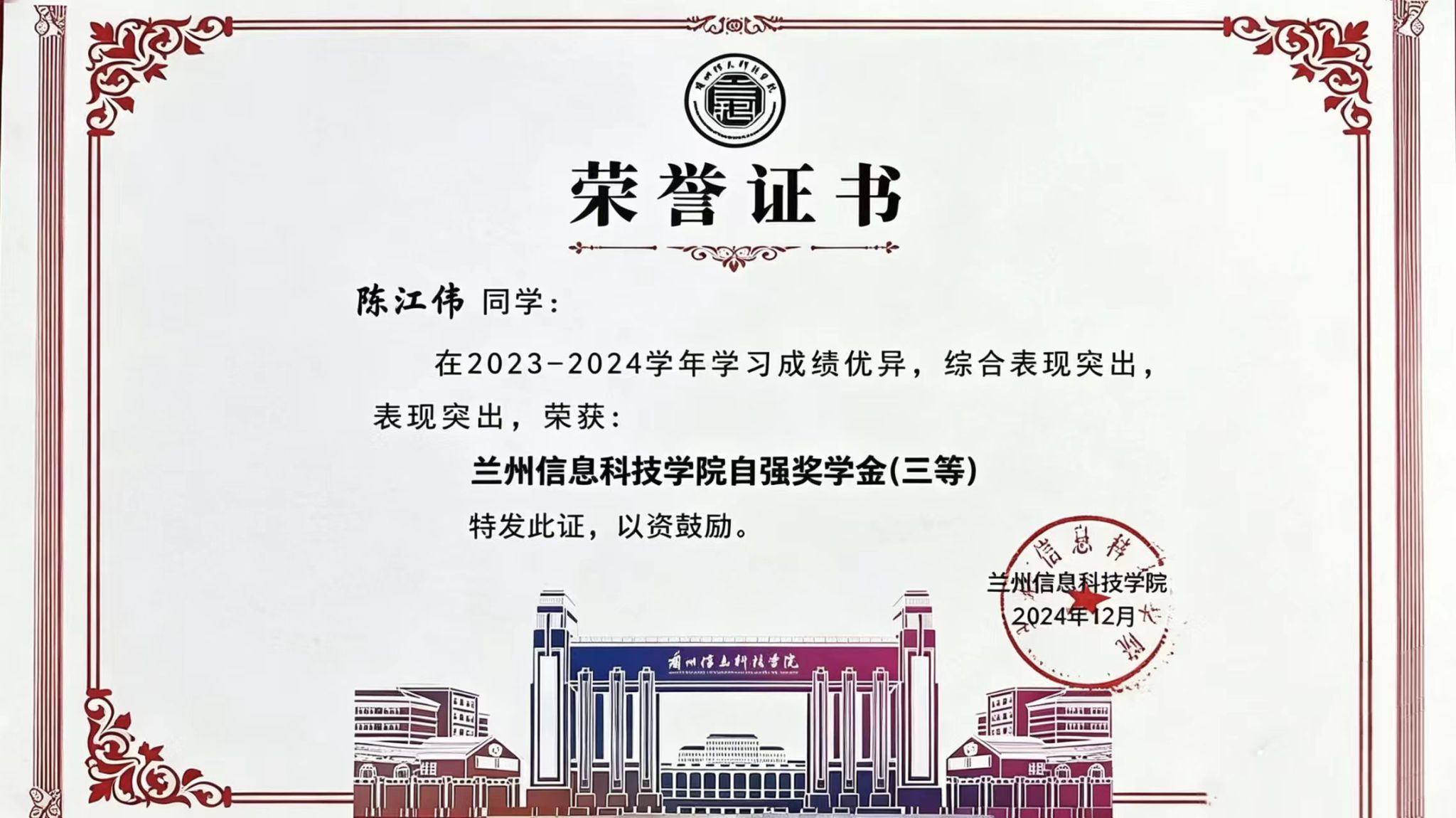 让他印象最深的有两件事。第一件是获评国家励志奖学金与优秀学生干部。为了争取这份荣誉,他不仅在专业课上保持优异成绩,还积极参与班级管理和学生会工作。他记得自己为了准备奖学金答辩,熬夜整理材料、反复练习演讲。当名单公布的那一刻,他明白:努力不会被辜负,责任与荣誉永远成正比。