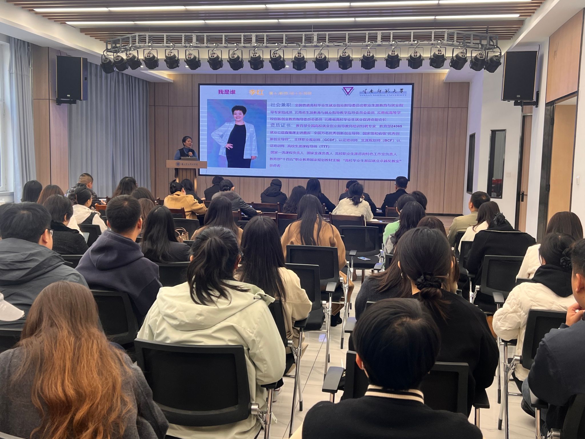 2025年10月24日,为精准提升我校辅导员对学生生涯规划与就业指导的能力,特邀全国普通高校毕业生就业创业指导委员会职业生涯教育与就业指导专家组成员李红教授担任主讲人,吸引了各二级学院党委书记、全体辅导员、书院辅导员、职业规划及就业指导课程任课教师,以及学生处、团委、就业服务中心等相关工作人员的积极参与。